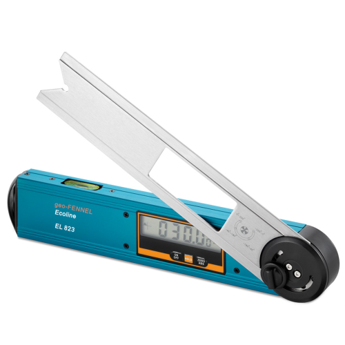 EL 823 to profesjonalny kątomierz elektroniczny niemieckiej marki geo-FENNEL, zamknięty w ergonomicznej, mocnej obudowie. Pomiar kąta odbywa się w pełnym zakresie 360°, a stalowe ramię można zablokować w dowolnej pozycji. Wynik pomiaru jest widoczny na czytelnym ekranie LCD. Urządzenie jest ponadto wyposażone w funkcję HOLD, która umożliwia zatrzymanie na ekranie zmierzonej wartości kąta. EL 823 to kompaktowy kątomierz elektroniczny, który zmieści się praktycznie w każdej skrzynce narzędziowej. Jest szczególnie polecany wykonawcom konstrukcji szkieletowych i dachów, ale również osobom wykonującym różne prace wykończeniowe. Kątomierz został wykonany z wysokiej jakości aluminium, stali oraz tworzyw sztucznych. Po rejestracji specjalne profity to trzeci rok ochrony gwarancyjnej.