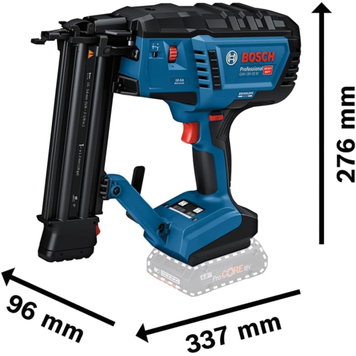 Akumulatorowa gwoździarka Bosch Professional GNH 18V-50 M to propozycja dla osób szukających alternatywy dla narzędzia pneumatycznego, zapewniającego porównywalną moc i wydajność, ale nie wymagającego stosowania kompresora, nabojów gazowych ani przewodu zasilania. Sprzęt ten będzie praktycznym wsparciem podczas mocowania obudów okien oraz drzwi, listew dekoracyjnych/wykończeniowych, listew przyszybowych, listew przypodłogowych, instalowania paneli sufitowych i podłogowych, a także montażu mebli czy elementów zabudowy.