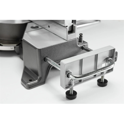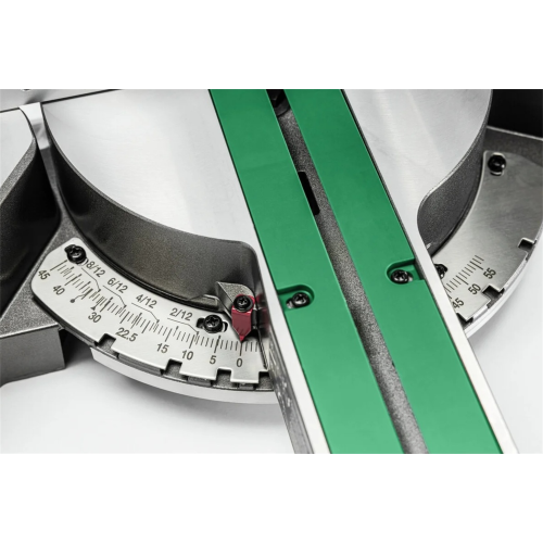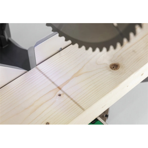 Pilarka jest wyposażona w precyzyjnie wykonany stół roboczy z wyraźnymi podziałkami kątowymi w zakresie prawo/lewo 0-57°, dzięki którym możliwe jest dokładne ułożenie obrabianego elementu względem głowicy tnącej. Wsparcie stanowi także mechanizm zatrzaskowy z blokowaniem stołu w 9 pozycjach z najpopularniejszymi parametrami cięcia.