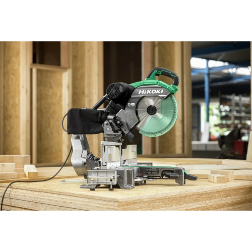 Ukośnica C12RSH3 Hikoki to profesjonalna maszyna do dokładnego cięcia drewna i materiałów drewnopochodnych. Cechuje się solidną budową oraz łatwą obsługą. Sprawdzi się przy cięciu m.in. budowlanych elementów konstrukcyjnych.