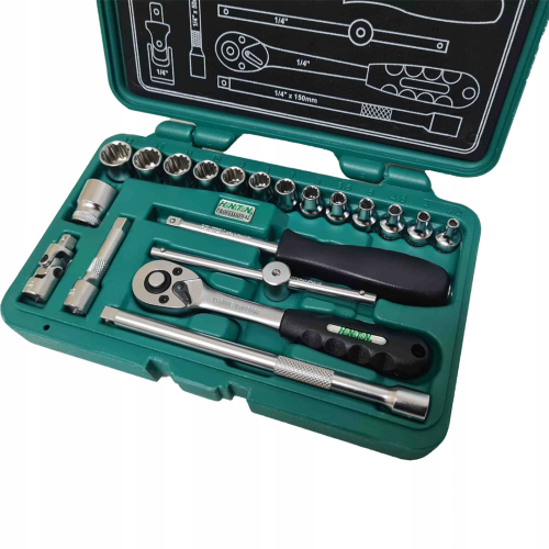 Zestaw kluczy nasadowych 1/4" Honiton H1120 składa się z 20 starannie dobranych elementów, które pozwalają na wykonywanie drobnych napraw, prac montażowych i serwisowych z najwyższą precyzją.