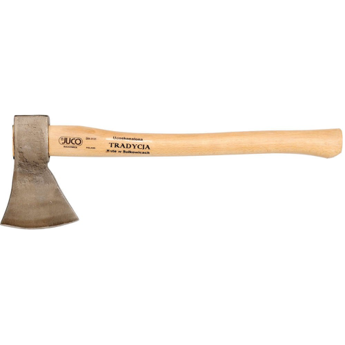 Siekiera tradycyjna 0.6kg 33001 Juco z kutą, szlifowaną częścią roboczą osadzoną na ergonomicznym, odpowiednio wyprofilowanym trzonku z mocnego drewna. Swoje zastosowanie znajduje przy pracach gospodarczych.