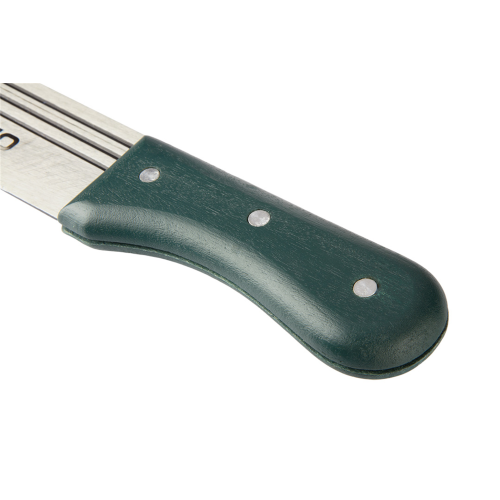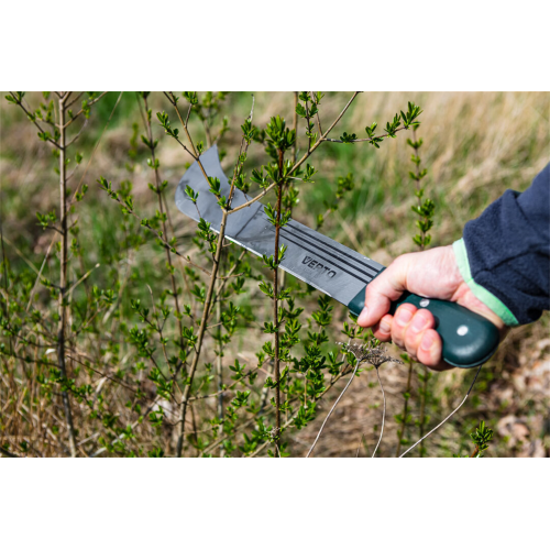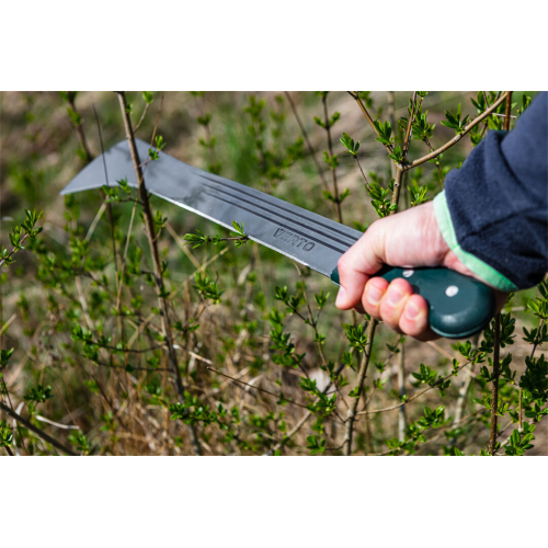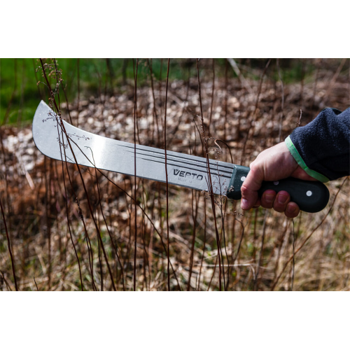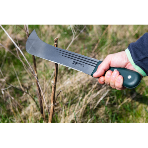 Maczeta ogrodowa VERTO (nr. ref. 15G191) o długości 455 mm. Bardzo przydatna podczas prac ogrodowych. Ostrze wykonane z hartowanej stali. Specjalny kształt ostrza zapewnia łatwiejszą pracę. Uchwyt wykonany z mocnego drewna, mocowany za pomocą nitów. Drewniany uchwyt komfortowo leży w dłoni. Marka VERTO skierowana jest do prac ogrodowych.