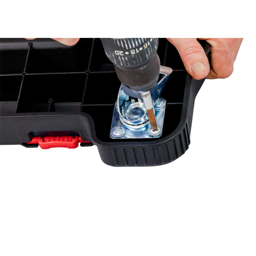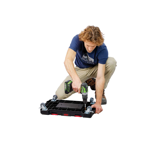 Produkt Keter 263012 ma dwie funkcje. Sprawdzi się jako podstawa mobilna dla połączonych ze sobą skrzynek, aby możliwe było ich wygodne transportowanie na miejsce pracy. Dzięki szybkiemu systemowi mocowania łączenie jej z innymi elementami Stack'N'Roll jest bardzo proste.