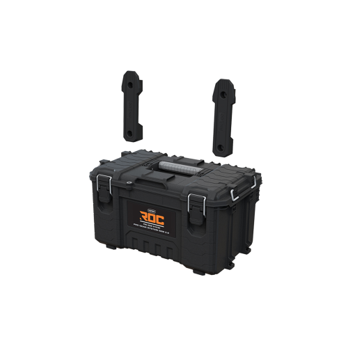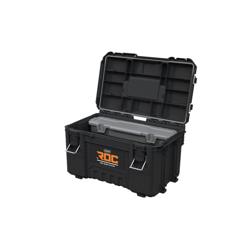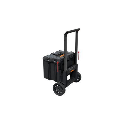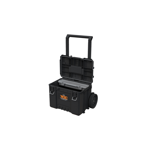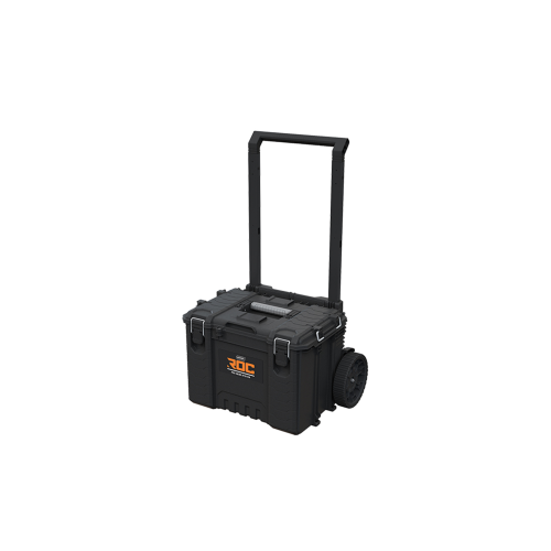 Innowacyjny system transportu ROC PRO GEAR, składa się teleskopowej rączki i dużych 9" kół. Zapewnia on wygodne manewrowanie nawet w pełni załadowanym zestawem oraz ułatwia jego załadowywanie na samochód. Innowacyjne rozwiązanie modułowe łączy wszystkie elementy zestawu w całość i pozwala rozszerzyć go o kolejne produkty marki Keter.
