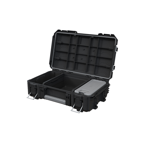 Zestaw 3 skrzynek Keter ROC PRO GEAR 2.0 to kompleksowe rozwiązanie problemu transportu akcesoriów i narzędzi różnych rozmiarów. Doskonale sprawdzi się w warsztacie, na placu budowy i w przydomowym garażu. Dzięki solidnej konstrukcji i zastosowanym uszczelnieniom można go używać niezależnie od warunków atomosferycznych. Zestaw zawiera walizkę i dwie skrzynki z wewnętrznymi organizerami, które pozwalają na wygodne uporządkowanie zawartości.
