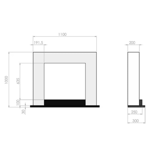 • Wymiary całkowite biokominka: 1100 x 1000 x 300 mm