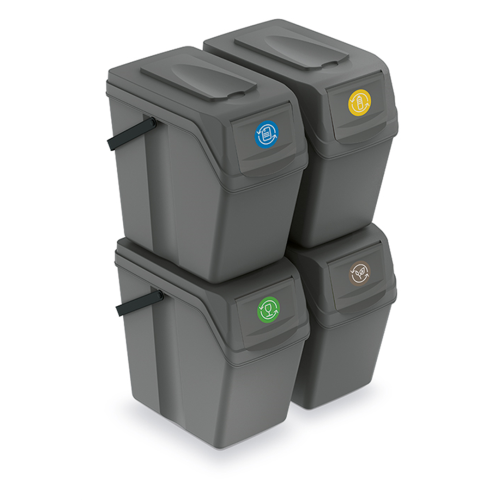 Pojemniki na śmieci ISWB25S4-405U Prosperplast sprawdzą się w każdym gospodarstwie domowym. Dzięki nim łatwo posegregujemy odpady. Każdy kosz wyposażono w zdejmowaną pokrywę, co ułatwia umieszczenie worka, a także w uchylną klapkę, przez którą można wrzucać śmieci. Klapki można oznaczyć kolorowymi naklejkami, aby segregacja nie sprawiała żadnego problemu. Ponadto konstrukcja pojemników umożliwia stawianie ich jeden na drugim, co pozwala zaoszczędzić miejsce. Kosze są piętrowane w taki sposób, aby otwory, przez które są wyrzucane śmieci, cały czas były łatwo dostępne. Dodatkowym udogodnieniem są rączki, które umożliwiają wygodne przenoszenia każdego pojemnika.