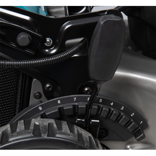 • 10-stopniowa centralna regulacja wysokości koszenia – precyzja i łatwość w ustawieniu odpowiedniego poziomu cięcia trawy.