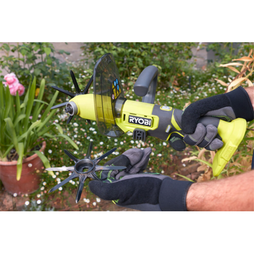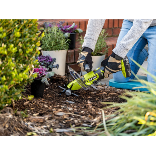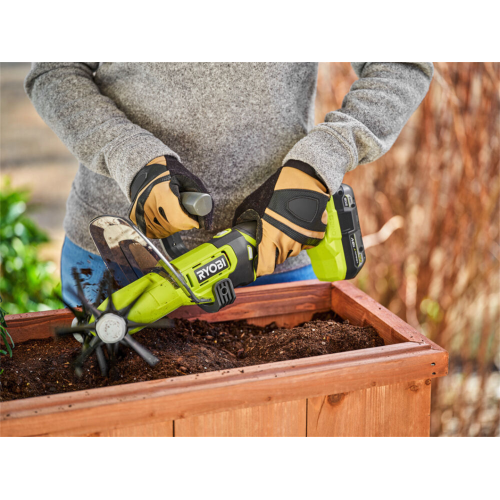 Akumulatorowy kultywator ręczny RY18HCA-0 Ryobi 5133005766 umożliwia usuwanie chwastów i napowietrzenie/odświeżenie gleby, którą chcemy przygotować pod wysiew nasion i sadzenie sadzonek. Narzędzie posiada zdejmowane solidne metalowe zęby, które łatwo wgryzają się w glebę. Szerokość robocza kultywatora wynosi 12cm, a głębokość to 5cm. Narzędzie jest też wyposażone w pomocniczą rękojeść, dzięki której użytkownik ma większą kontrolę podczas pracy. Posiada także plastikową osłonę, która ogranicza rozbryzg spulchnianej ziemi. W zależności od podłoża (czy jest bardziej twarde, czy miękkie) użytkownik może także regulować prędkość, aby osiągnąć jak najlepsze rezultaty. Kultywator jest częścią systemu akumulatorowego Ryobi ONE+ 18V.