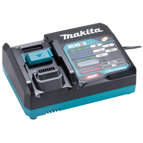 Ładowarka DC40RA XGT 191E07-8 Makita jest przeznaczona do ładowania akumulatorów 40V XGT. Jest też opcja ładowania akumulatorów 18V LXT po zastosowaniu adaptera ADP10, który należy dokupić. Posiada zabezpieczenie przed przeładowaniem ogniw. Wyposażona we wskaźnik LED stanu naładowania baterii co pozwoli kontrolować jego stan, a główny procesor ładowarki analizuje dane z pamięci akumulatora. Dzięki sprawdzaniu na bieżąco stanu napięcia i temperatury akumulatorów możemy znacząco zwiększyć jego żywotność.