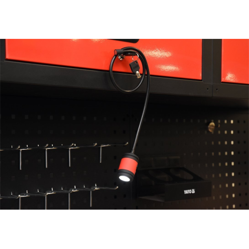 Lampka wielofunkcyjna LED YT-08516 może być stosowana w różnych warunkach - może pełnić zarówno rolę lampki biurowej, jak i oświetlać miejsce pracy w warsztacie czy garażu. Dzięki ramieniu zakończonemu magnesem operator może podpiąć do niej metalowe obiekty, takie jak np. klucze. Wysoka odporność na wilgoć i pył umożliwia korzystanie z lampki w wielu miejscach. Wydajny akumulator sprawia, że lampka może pracować przez długi czas.