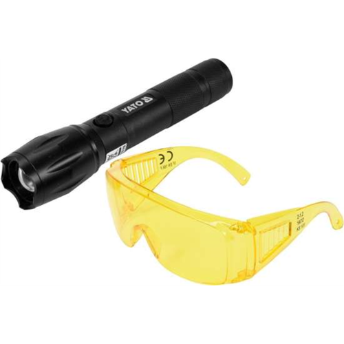Latarka UV Yato YT-08587 posiada precyzyjnie dobraną długość fal, dzięki czemu detekcja kontrastu jest wyraźniejsza. Urządzenie przeznaczone jest do diagnozowania układów klimatyzacji samochodowej, czy też poszukiwania minerałów reagujących na światło UV, odczytu napisów wykonanych farbą UV oraz testowania banknotów. W zestawie znajdują okulary, które chronią wzrok użytkownika przed szkodliwymi promieniami latarki.