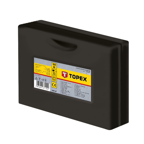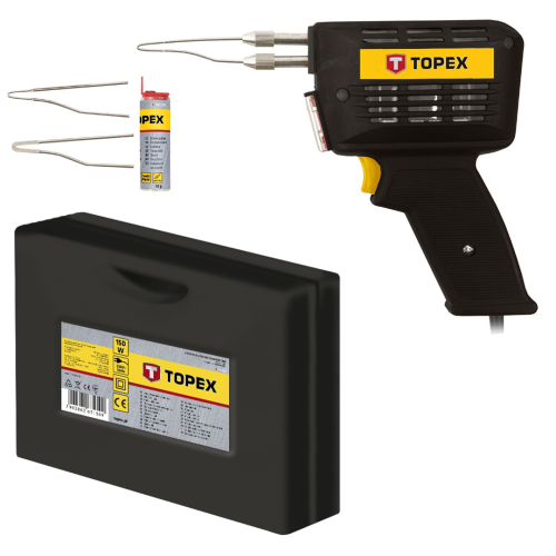 Lutownica TOPEX 44E005 jest narzędziem z certyfikatem bezpieczeństwa CE. Urządzenie posiada wytrzymały korpus z tworzywa sztucznego, a w trakcie działania włącza się lampka. Lutownica ma moc 150W, a jej masa wynosi 0,6kg. Bogate wyposażenie podstawowe.