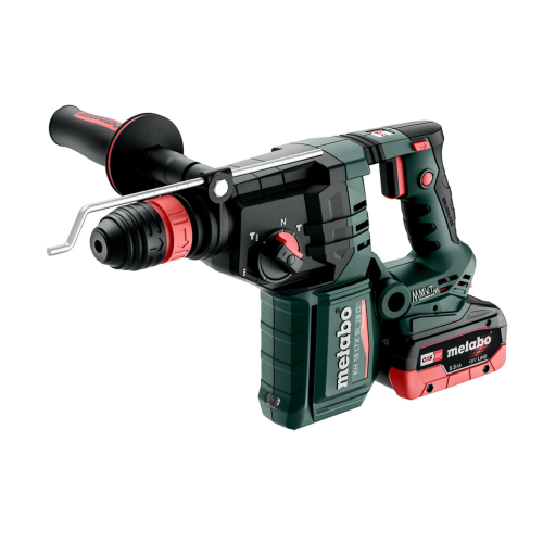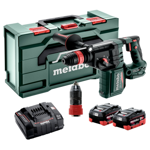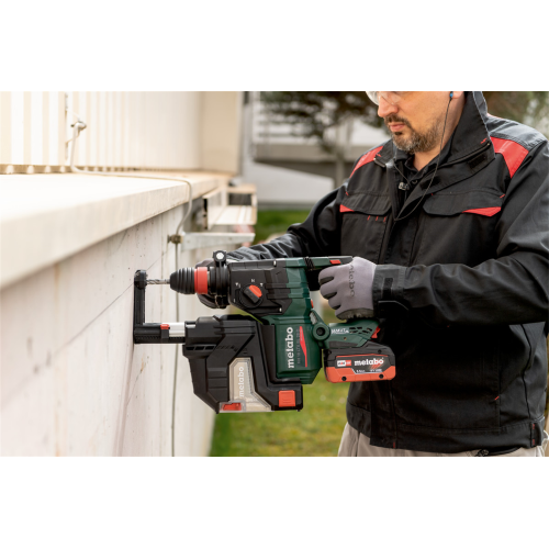 Kombimłotek SDS-Plus KH 18 LTX BL 28 Q Metabo 601715660 z bezawaryjnym silnikiem bezszczotkowym dla większej wytrzymałości. Możliwość wiercenia z udarem i bez oraz podkuwania sprawia, że za pomocą jednego narzędzia użytkownik może wykonać więcej zadań. Elektornika Vario-Tacho-Constamatic (VTC) pozwala swobodnie regulować prędkość obrotową, dostosowując ją do potrzeb operatora, a specjalny system utrzymuje stały poziom obrotów pod obciążeniem - ponadto istnieje funkcja redukcji prędkości obrotowej i energii udaru, co swoje zastosowanie znajduje przede wszystkim podczas obróbki materiałów miękkich. System Metabo Quick wprowadza możliwość szybkiej i beznarzędziowej wymiany elementu eksploatacyjnego, co przekłada się na większy komfort użytkowania oraz oszczędza czas. Metabo Vibratech to technologia redukująca drgania podczas pracy, dzięki czemu ta jest znacznie bardziej wygodna. Łagodny rozruch eliminuje nieprzyjemne rwanie charakterystyczne dla uruchamiania narzędzia. Ochrona przed odrzutem zapewniona jest przez odłączanie napędu w sposób mechaniczny oraz możliwość odłączenia czujnika sterowania - zapewnia to większe bezpieczeństwo pracy. Wbudowane oświetlenie LED zapewnia precyzję, bezpieczeństwo i komfort działania w miejscach pozbawionych światła. Możliwość podłączenia systemu odsysania pyłu (do kupienia osobno) dla większej czystości miejsca pracy. Narzędzie można zasilić każdym akumulatorem 18V oraz kompatybilne jest ze wszystkimi ładowarkami marek CAS, co świadczy o jego wszechstronności.