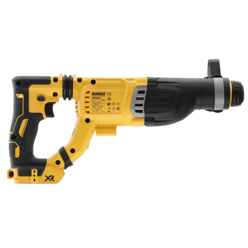 Akumulatorowa młotowiertarka DCH263N to nowoczesna konstrukcja do wykończeniowych prac. Spore parametry jak na sprzęt z silnikiem poziomym podyktowane są minimalizacją gabarytów w czasie połączenia z systemem odsysania pyłu z otworów DWH205DH, który po zamocowaniu nie powoduje znaczącego powiększenia maszyny. Bezszczotkowy silnik doskonale współgra z zasilaniem akumulatorowym, a antywibracyjny system poprawia bezpieczeństwo i komfort pracy. Młot udarowo-obrotowy umożliwia wiercenie w twardych materiałach budowlanych, podkuwanie i wiercenie bez udaru w pozostałych materiałach. Kompletacja oznaczona N polecana jest fachowcom posiadającym już sprzęt DeWALT XR 18V lub chcącym samodzielnie skompletować swój wymarzony zestaw.