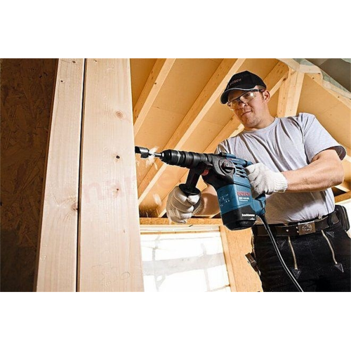 Młotowiertarka udarowo-obrotowa Bosch GBH 3-28 DFR oferuje o 20 % wyższą wydajność dłutowania i najszybsze tempo wiercenia wśród młotów tej klasy. Równocześnie GBH 3-28 DFR odznacza się o 20 % niższym poziomem drgań niż porównywalne produkty. Dzięki systemowi tłumienia drgań Vibration Control GBH 3-28 DFR gwarantuje komfortową i mniej szkodliwą dla zdrowia pracę. Młot Bosch GBH 3-28 DFR to specjalista od szybkich wierceń oraz podkuwania. Wszechstronność tego kompaktowego urządzenia docenią zarówno rzemieślnicy budowlani zatrudnieni np. w budownictwie naziemnym, jak również elektrycy czy monterzy instalacji sanitarnych i grzewczych. Idealnym obszarem zastosowań młota GBH 3-28 DFR Professional są np. prace związane z dłutowaniem, jak skuwanie płytek oraz wiercenie otworów pod kotwy i kołki o średnicach od 10 do 16 mm. Wymienny uchwyt wiertarski umożliwia szybką zmianę funkcji pomiędzy wierceniem z udarem w betonie a wierceniem bez udaru w drewnie.