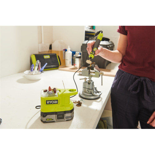Narzędzie wysokoobrotowe RRT18-0 Ryobi 5133004939 umożliwia wykonywanie bardzo precyzyjnych prac, między innymi dekoracji na szkle. Możliwość regulacji prędkości pozwala dostosować działanie modelu do potrzeb operatora. Uniwersalna tuleja zaciskowa zwiększa komfort użytkowania. W zestawie znajdują się akcesoria do różnego rodzaju zadań. Kompatybilność z akumulatorami 18V serii ONE+ podkreśla unwiersalność modelu.