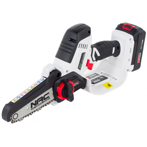 Jednoręczna pilarka łańcuchowa CB18-12-B20-S NAC to bezprzewodowa alternatywa dla sekatora. Urządzenie umożliwia błyskawiczne przycinanie małych i średnich gałęzi drzew obwodowych i nie tylko. Sprawdzi się również w zastępstwie toporka w czasie zmniejszania rozmiarów drobnego opału.