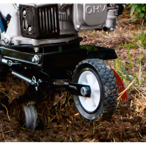 Urządzenie ma regulowaną głębokość pracy, co pozwala dostosować je do wykonywania głębokich wykopów lub delikatnego spulchniania gleby. Dzięki solidnej konstrukcji oraz ergonomicznym rękojeściom, tłumiącym drgania, można pewnie je prowadzić po obrabianej powierzchni.