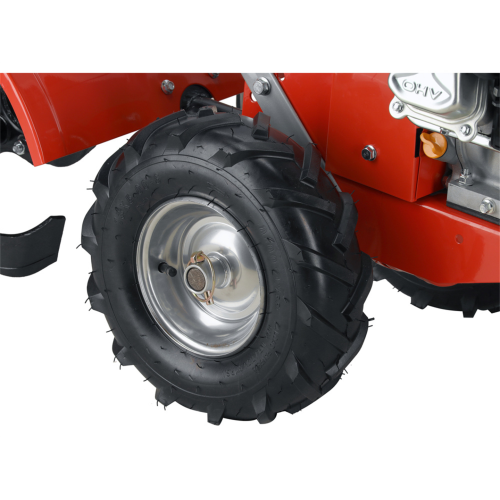 Urządzenie ma wytrzymałą stalową obudowę, która sprawdza się w wymagających warunkach roboczych. Jest też wyposażona w osłonę chroniącą użytkownika przed rozbryzgami ziemi. Istotnymi elementami glebogryzarki są również koła z napędem, które umożliwiają płynne poruszanie się po spulchnianej powierzchni. Producent zaopatrzył ten model także w bieg wsteczny ułatwiający wyciągnięcie urządzenia w przypadku ugrzęźnięcia.