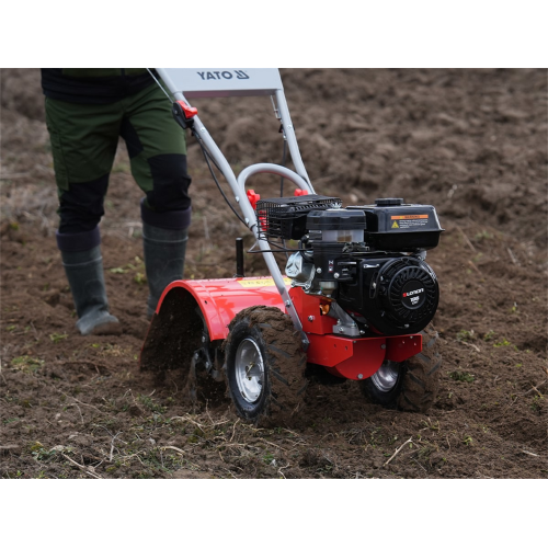 Glebogryzarka spalinowa Yato YT-85592 została zaprojektowana z myślą o użytku domowym w ogrodach czy na działkach. Dzięki solidnemu silnikowi LONCIN o pojemności 196 cm3, a także szerokości roboczej 480 mm zapewnia sprawne rozbijanie grud ziemi, a także jej mieszanie. Sprzęt ten może pracować na głębokości 260 mm, co daje pewność odpowiedniego przygotowania gleby pod uprawę czy mieszania jej z nawozami lub kompostem.