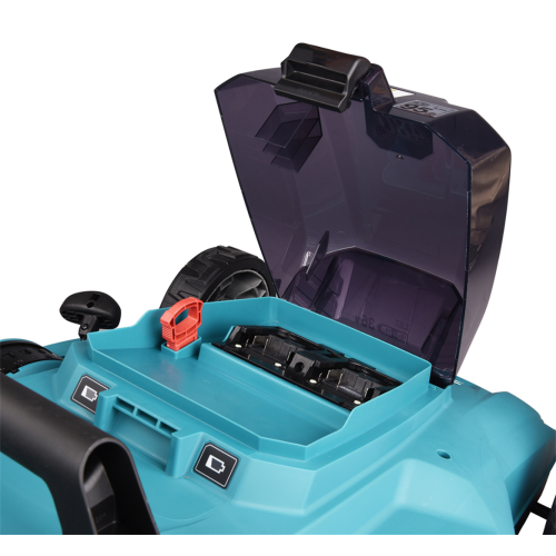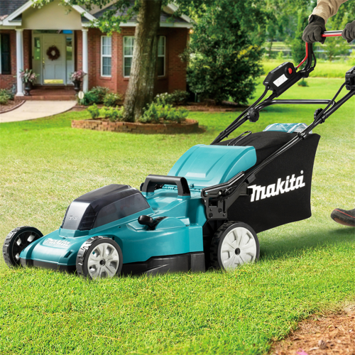 Kosiarka Makita DLM481Z to samobieżne urządzenie napędzane 2 akumulatorami, przez co doskonale sprawdza się na dużych terenach. Dzięki technologii XPT silnik chroniony jest przed pyłem i wilgocią, umożliwiając pracę w deszczu. 10-stopniowa regulacja wysokości koszenia pozwala operatorowi dostosować ją do swoich potrzeb. Za sprawą łagodnego rozruchu komfort rozpoczynania pracy jest większy. Zastosowanie hamulca elektrycznego, który szybko zatrzymuje silnik, przekłada się na większe bezpieczeństwo użytkowania. Funkcja anty-restart zapobiega nagłemu włączeniu się narzędzia po podłączeniu akumulatora. Dźwignia blokady przed dziećmi chroni je przed włączeniem kosiarki. Uchwyt zaprojektowano tak, aby dostęp do panelu sterowania był łatwiejszy - wysokość uchwytu można regulować w 2 stopniach. Specjalna dźwignia pozwala wygodnie regulować prędkość. Koła na łożyskach kulkowych cechują się większą zwrotnością, a co za tym idzie manewrowalność kosiarki jest lepsza. Kosz na trawę ze wskaźnikiem poziomu zapełnienia oraz lampki ostrzegające o poziomie naładowania akumulatorów pozwalają lepiej zorganizować pracę. 2-zębne ostrze pozwala zarówno mulczować, jak i ciąć. Model oferuje funkcję zbierania skoszonej trawy. Po zakończonej pracy urządzenie można wygodnie odstawić w pozycji pionowej.