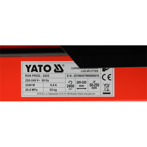 Łuparka YT-79950 umożliwia regularną pracę przerywaną w bezpiecznych warunkach, o czym świadczą mocny silnik 2200 W, zabezpieczenie przed pyłem i wilgocią (IP 54), stalowa rama odporna na obciążenie oraz niski poziom drgań < 2,5 m/s². Poziom hałasu 78,8 dB(A)/89,8 dB(A) pozwala użytkować urządzenie w otoczeniu domowym.