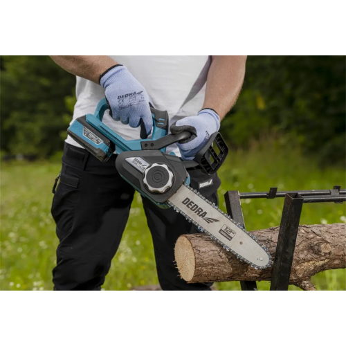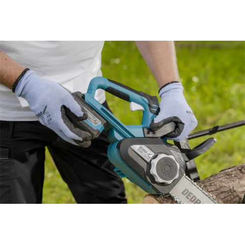 Akumulatorowa piła łańcuchowa DED7183 Dedra sprawdzi się w zastosowaniu domowym. Model z prowadnicą o długości 30 cm umożliwia cięcie gałęzi, konarów czy pieńków o maksymalnej średnicy 26 cm. Jest przystosowany do pracy z akumulatorami litowo-jonowym 18 V z serii SAS+ALL marki Dedra.