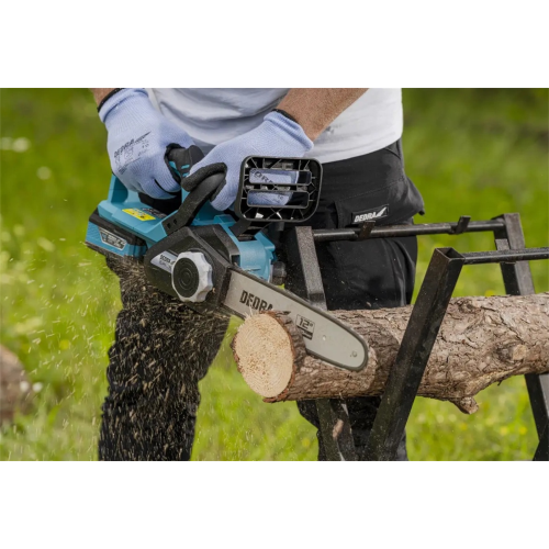 Projektując model DED7183 zadbano również o komfort pracy. Automatyczne smarowanie i beznarzędziowa regulacja łańcucha usprawniają konserwację oraz przygotowanie do cięcia, włącznik z zabezpieczeniem przed przypadkowym uruchomieniem, a także hamulec (odcina zasilanie, gdy łańcuch nagle uderzy w twardy materiał lub zatrzyma się) chronią zdrowie użytkownika.