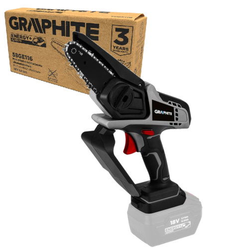 Pilarka łańcuchowa akumulatorowa Energy+ 18 V 58GE116 Graphite to kompaktowe i wydajne narzędzie, które jest idealnym rozwiązaniem dla osób potrzebujących niezawodnego sprzętu do pracy w ogrodzie. To wysoce funkcjonalne urządzenie, które łączy w sobie nowoczesną technologię, bezpieczeństwo użytkowania oraz ergonomiczny design.