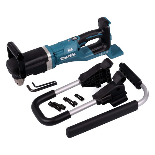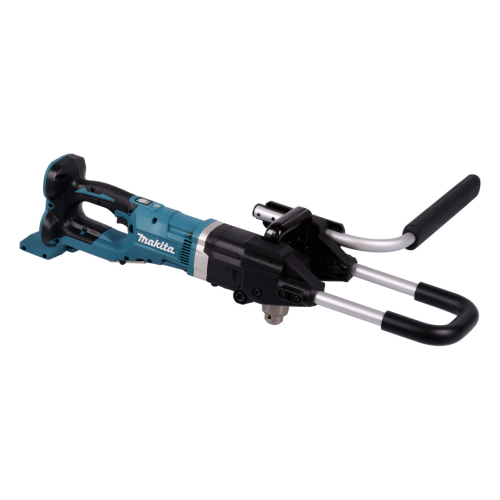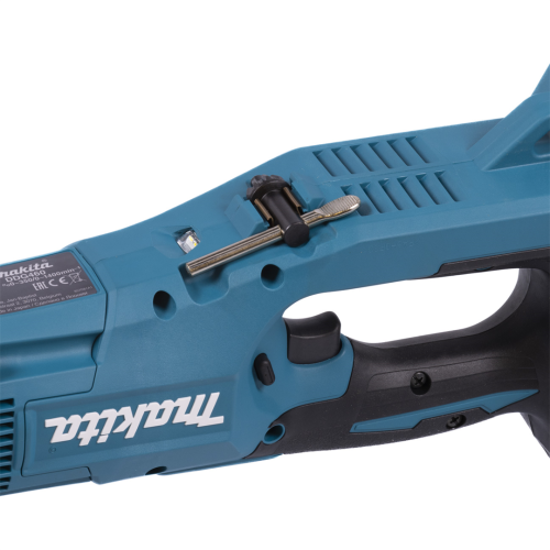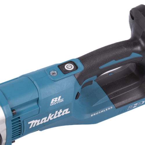 Wiertnica glebowa Makita DDG460T2X7 posiada żywotny silnik bezszczotkowy. Technologia XPT zwiększa niezawodność narzędzia, dzięki ochronie przed pyłem i wilgocią. Technologia ADT automatycznie dobiera prędkość obrotową do specyfiki obrabianego materiału. Przekładnia mechaniczna posiada 2 biegi, co poszerza zakres zastosowań. W razie potrzeby operator może zmienić kierunek obrotów - obroty wsteczne umożliwiają łatwe wyciągnięcie świdra, gdy ten zablokuje się w podłożu. Ogranicznik momentu obrotowego sprawia, że użytkownik może pracować z jedną mocą, co zwiększa wygodę i efektywność. Główny włącznik posiada funkcję automatycznego wyłączenia po 5min, jeżeli spust nie zostanie uruchomiony - niedoprowadza to do nadmiernej eksploatacji. Akumulatory chronione są przed uderzeniami, a także przed przeciążeniem i przegrzaniem, co wydłuża ich żywotność. Dwie diody LED pozwalają pracować w ciemnych miejscach i mają funkcję opóźnionego wygaszania. Wygodny uchwyt zwiększa komfort przy wierceniu w ziemi. Lekka konstrukcja zapewnia lepszą manewrowalność.