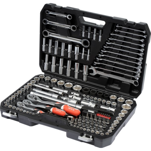 Zestaw narzędzi Yato YT-38811 znajdzie zastosowanie w profesjonalnych warsztatach samochodowych oraz serwisach. Zestaw składa się ze 150 elementów. Narzędzia wykonano z mocnej stali chromowo-wanadowej. Doskonale sprawdzą się w pracach wymagających dużych obciążeń i precyzji.