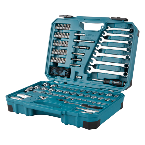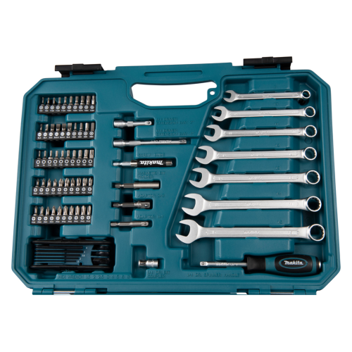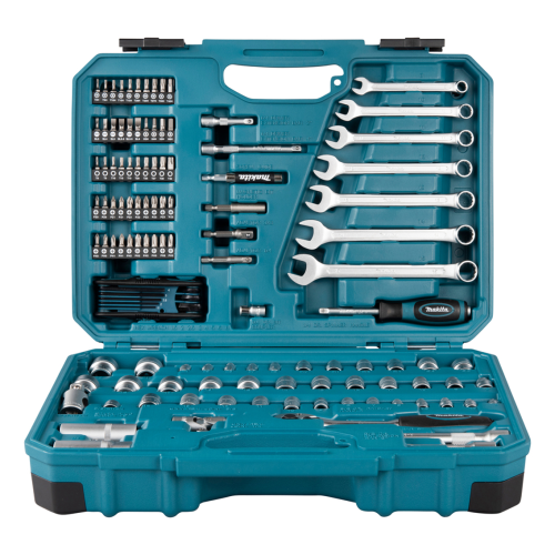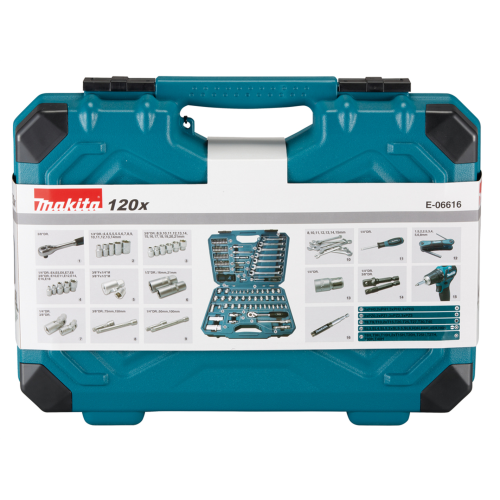 Zestaw 120 narzędzi ręcznych E-06616 Makita to kompletacja, która znajdzie zastosowanie w rozmaitych pracach warsztatowych. Różne rozmiary końcówek roboczych umożliwiają wykonywanie szeregu zadań. Wszystkie elementy zestawu zostały uporządkowane w poręcznej walizce z tworzywa sztucznego, która ułatwia przechowywanie i transportowanie akcesoriów.