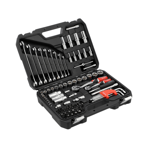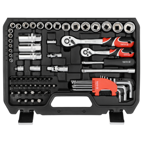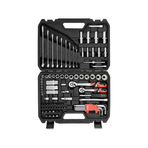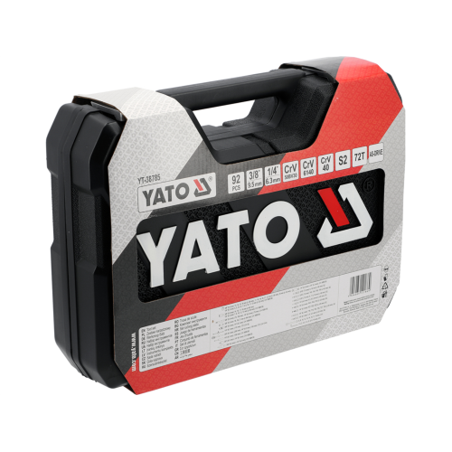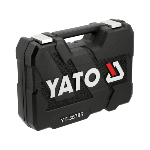 Zestaw YT-38785 jest dostarczany w solidnej walizce z tworzywa sztucznego. Wewnątrz niej znajdują się wytłoczenia dla każdego z narzędzi, dzięki czemu wszystkie akcesoria są uporządkowane. Ułatwia to odnajdywanie potrzebnego elementu, ale też pozwala na bezpieczne transportowanie oraz przechowywanie zestawu.
