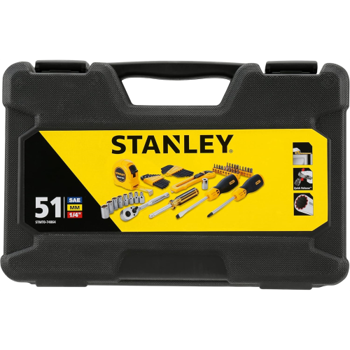 Zestaw narzędzi ręcznych Stanley STMT0-74864 to idealne rozwiązanie zarówno dla profesjonalistów, jak też amatorów majsterkowania, którzy poszukują wszechstronnych oraz trwałych rozwiązań. Komplet zawiera 51 elementów, w tym grzechotki, nasadki, klucze imbusowe oraz akcesoria pomiarowe, które doskonale sprawdzą się przy różnorodnych zadaniach domowych i warsztatowych. Różne rozmiary precyzyjnie wykonanych końcówek, a także ergonomiczne uchwyty narzędzi sprawiają, że zestaw ten łączy funkcjonalność z wygodą użytkowania.