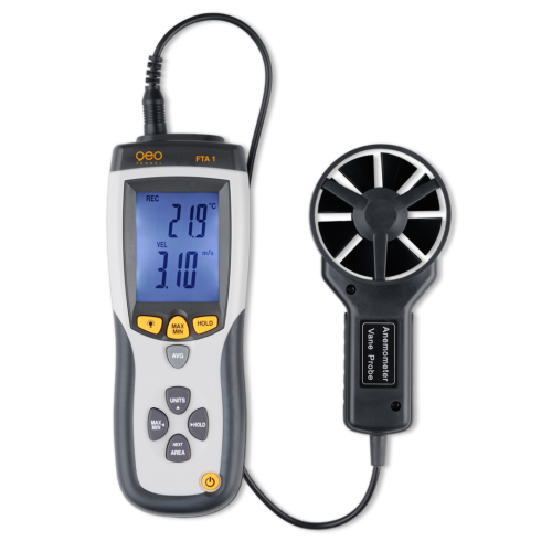Profesjonalny anemometr śmigiełkowy z termometrem niemieckiej marki geo-FENNEL do pomiaru prędkości i strumienia objętości powietrza oraz temperatury otoczenia. Wysoka dokładność pomiaru i długi czas pracy do 80 h na jednym komplecie baterii. Termometr - anemometr do jednoczesnego pomiaru prędkości i strumienia objętości powietrza. Urządzenie wyświetla dodatkowo temperaturę zewnętrzną w zakresie -10° do +60°C. Urządzenie znajduje zastosowanie w branży wentylacyjnej i klimatyzacyjnej np. podczas instalacji urządzeń wentylacyjnych, pomiaru prędkości i temperatury powietrza w otoczeniu. Wyniki pomiarów są prezentowane na czytelnym podświetlanym ekranie LCD. Funkcja HOLD umożliwia zapamiętanie zmierzonej wartości na ekranie. Przyrząd dostarczany z sondą skrzydełkową z kablem 120 cm, bateriami i pojemnikiem transportowym. Oferowane przez firmę geo-FENNEL markowe akcesoria są wykonane według najwyższych standardów jakości. Zastosowanie wysokiej klasy komponentów i podzespołów gwarantuje zachowanie płynności pracy oraz ponadstandardową dokładność.