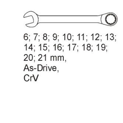 Wkładka do szuflady klucze płasko-oczkowe 16 części.