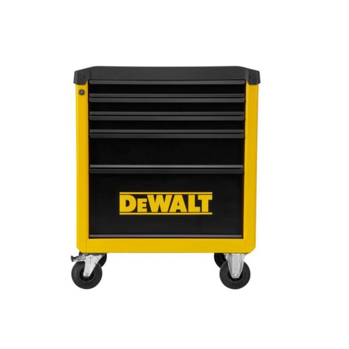 Wózek DWHT50001-1 ma 5 szuflad osadzonych na prowadnicach zapewniających płynne wsuwanie i wysuwanie, a tym samym łatwy dostęp do narzędzi. Mniejsze szuflady świetnie sprawdzają się do przechowywania drobnych akcesoriów, natomiast duża dolna szuflada to odpowiednie miejsce dla elektronarzędzi, artykułów BHP czy innych większych przedmiotów.