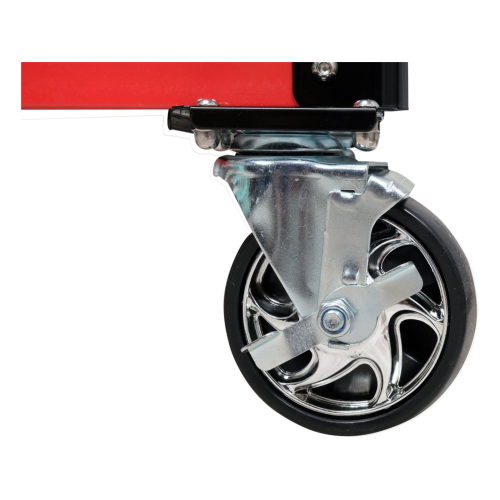 Ważnymi elementami wózka YT-55212 są też 4 kółka osadzone na łożyskach kulkowych, w tym 2 skrętne z hamulcami. Pozwalają one na łatwe przemieszczanie się, a podczas pracy zapewniają stabilną pozycję roboczą. Prowadzenie wózka ułatwia także szeroka rękojeść.