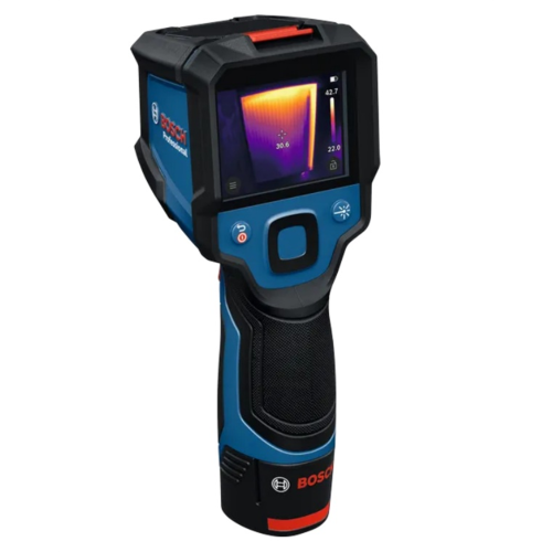 Kamera termowizyjna PRO GTC 12V-450-13 L-BOXX Bosch Professional to nowoczesne narzędzie pomiarowe, które umożliwia wizualizację różnic temperatur. Pozwala na lokalizowanie rur grzewczych, sprawdzanie systemów grzewczych i klimatyzacyjnych, a także identyfikowanie problemów z komponentami elektrycznymi, szczególnie w pomieszczeniach. Ma szerokie zastosowanie w wielu branżach – HVAC, budowlanej, remontowej, przemysłowej, motoryzacyjnej i innych.