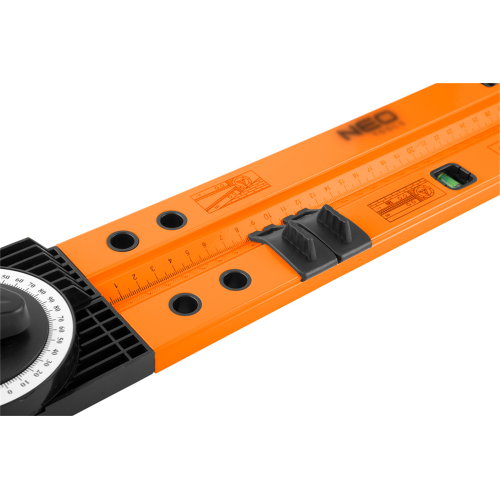 Kątomierz nastawny z poziomicą 500 mm, 2 libelle, ołówek 72-225 marki NEO to wielozadaniowe narzędzie, które łączy kilka przyrządów pomiarowych w jednym. Posiada kątomierz z szerokim zakresem mierzenia 0° - 270°, poziomnicę z dwoma libellami o długości 500 mm i przymiar liniowy o długości 50 cm. Narzędzie umożliwia przymocowania ołówka stolarskiego (będącego w zestawie) i korzystania z funkcji cyrkla. Wbudowana śruba zaciskowa pozwala na prosty i skuteczny pomiar kąta. Kątomierz od marki NEO polecany jest do każdego warsztatu majsterkowicza.