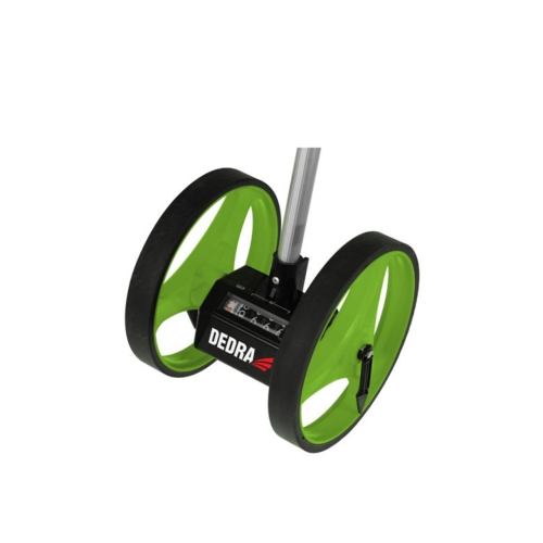 Koło pomiarowe Dedra MC1001 posiada parę kół, dzięki którym możliwe jest dokonywanie pomiarów budowlanych, takich jak mierzenie dróg położonych na równym i nierównym terenie, a także mierzenie działek.
