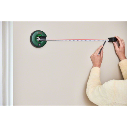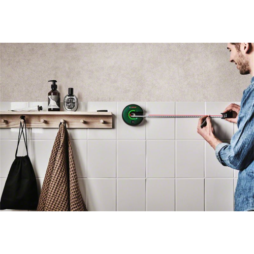 Laser liniowy/taśma pomiarowa Atino Bosch 0603663A00 to narzędzie pomiarowe 2w1 zaprojektowane z myślą o użytku w domu, podczas różnych prac związanych z mocowaniem, wyrównywaniem i poziomowanie obiektów. Sprawdzi się, np. przy wieszaniu obrazu, lustra, wieszaków czy też telewizora. Nietypowa konstrukcja lasera pozwala wyrównywać obiekty poziomo lub pionowo we wszystkich kierunkach (0°, 90°, 180°, 270°). Model Atino emituje czerwoną wiązkę i posiada dodatkowo taśmę pomiarową. Urządzenie jest dostarczane z dwoma rodzajami podkładek do mocowania na różnych powierzchniach (ścianie, płytkach itp.), co pozwala na wygodą obsługę przez jedną osobę. Laser/taśma Atino Bosch przyda się każdemu majsterkowiczowi.