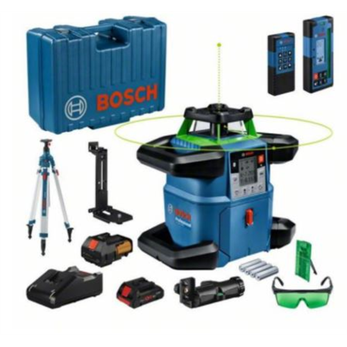 Laser obrotowy GRL650CHVG+BT300HD Bosch 06159940PS posiada zieloną, dobrze widoczną w trudnych warunkach wiązkę. Funkcja komunikacji poprzez Bluetooth zapewnia wysoki komfort prowadzenia działań. Dzięki wysokiej klasie szczelności model ten może być z powodzeniem wykorzystywany w trudnych warunkach, gdyż chroniony jest przed pyłem i wodą. Kompatybilność z aplikacją Levelling Remote wprowadza możliwość przeglądania ustawień i zdalnego sterowania, co przekłada się na większą wygodę użytkowania oraz oszczędność czasu. Urządzenie zasilić można akumulatorem, bądź 4 bateriami typu D, wobec czego jest ono bardzo uniwersalne. Podwójny kąt nachylenia, funkcja zapamiętywania kąta nachylenia oraz dołączony do zestawu odbiornik poszerzają zakres zastosowań.