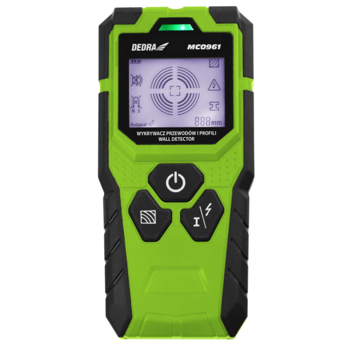 Wykrywacz przewodów i profili Dedra MC0961 umożliwia wykrywanie metali ferromagnetycznych i nieżelaznych oraz przewodów pod napięciem i profili drewnianych - o wykryciu któregoś z nich operator informowany poprzez zapalenie się diody z odpowiednim kolorem. Funka automatycznego wyłączania się zapobiega nadmiernej eksploatacji narzędzia i zużycia baterii podczas przerwy lub gdy operator zapomni samemu wyłączyć model. Obudowa wyposażona została w gumowe elementy, które chronią urządzenie przed upadkami z wysokości. Czytelny obraz LCD zdecydowanie obniża ewentualność wystąpienia błędu odczytu.