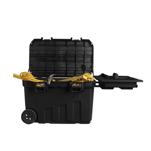 Mobilna skrzynia narzędziowa Stanley 1-92-978 o pojemności 91l sprawdzi się idealnie do przechowywania elektronarzędzi, narzędzi ręcznych i akcesoriów. Dzięki wytrzymałym kółkom i miękkiemu uchwytowi skrzynię można wygodnie przesuwać z jednego miejsca do drugiego. Takie rozwiązanie ułatwi pracę każdemu fachowcowi, który musi mieć pod ręką wiele różnych narzędzi, jak też ułatwi utrzymanie porządku w warsztacie czy na budowie.