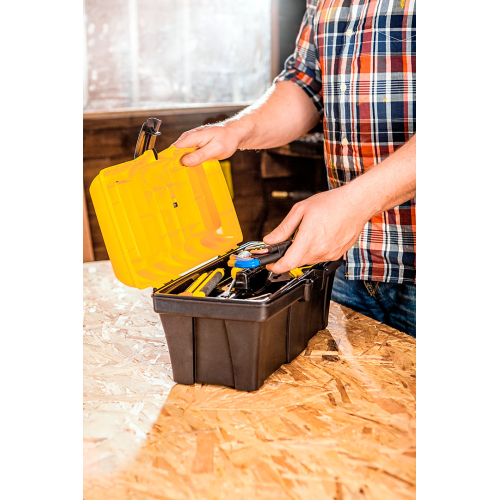 Skrzynka narzędziowa 16" TOPEX (nr ref.79R124) o wymiarach 38x17x17cm. Lekka i praktyczna skrzynka narzędziowa wykonana z odpornego tworzywa sztucznego. Posiada 2 praktyczne organizery do przechowywania drobnych elementów i wygodny uchwyt do przenoszenia. Marka TOPEX skierowana jest do majsterkowiczów.