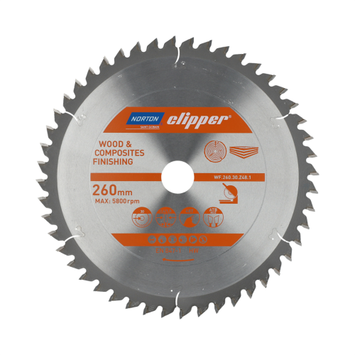 Tarcza do cięcia NORTON CLIPPER WF.260.30.Z48.1 do pił ukośnic jest przeznaczona do szybkiego cięcia gładkiego poprzedzonego i wzdłużnego drewna i kompozytów.