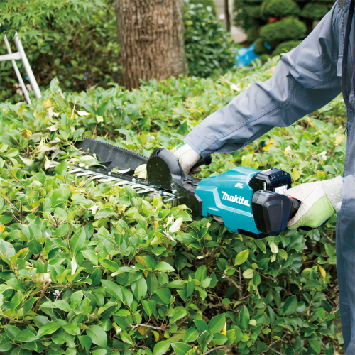 Akumulatorowe nożyce do żywopłotu DUH754SZ Makita wyróżniają się innowacyjną konstrukcją, na którą składają się ułożone w nowy sposób rękojeści i długa jednostronna listwa tnąca (75cm). Do zasilania nożyc potrzebny jest akumulator litowo-jonowy, który będzie stanowił dodatkową przeciwwagę dla listwy, zapewniając optymalne wyważenie narzędzia. Nożyce posiadają m.in. 3-stopniową regulację częstotliwości skoków, silnik bezszczotkowy, a także przystawkę do zbierania ścinek. Dzięki technologii XPT konstrukcja nożyc odznacza się większą odpornością na pył i wilgoć.